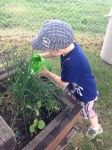 Watering the Vegetables Growing in our Garden in the Daycare Park